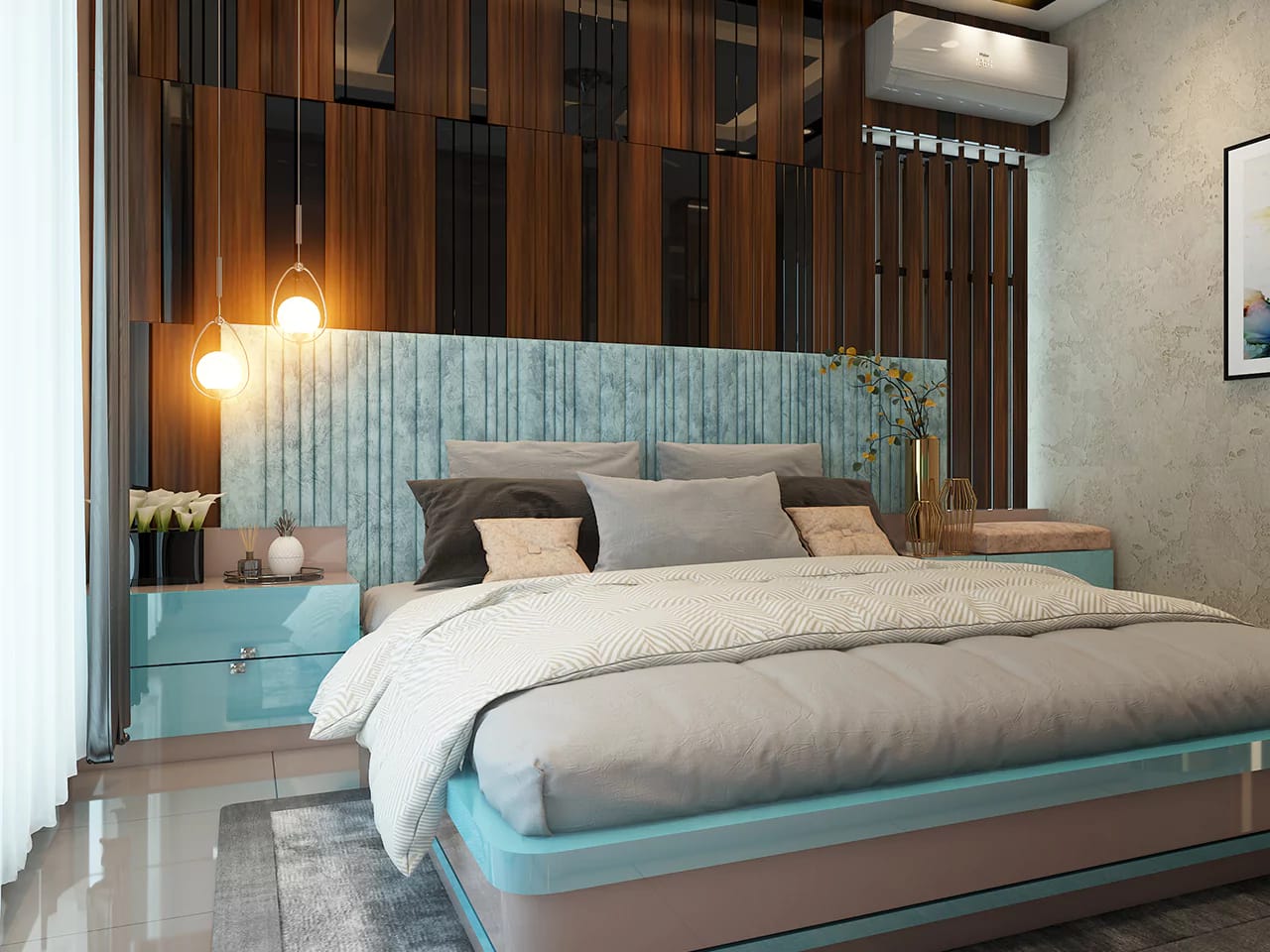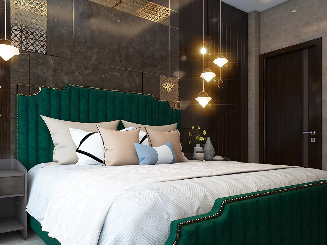 The overall effect is a bedroom that is both stylish and serene, where one can relax and recharge in harmony with nature.